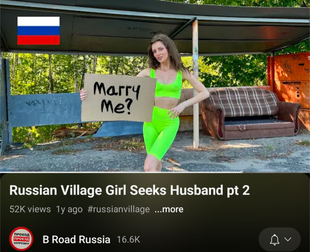 Англоязычные ютьюб-каналы о жизни в России — узкая ниша, ее участники говорят примерно о 50 постоянно обновляемых видеоблогах. Но темы отношений с женщинами и феминизма в них достаточно популярны. Видео о том, кто должен оплачивать счет в ресторане на свидании, об отличиях американских женщин от российских, о том, как покорить русскую девушку, набирают сотни тысяч просмотров.
